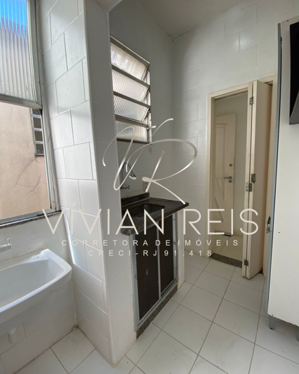 O banheiro tem box blindex e bancada da pia com armário, a cozinha está montada com armário funcional e o imóvel possui ar-condicionado que já está no lugar para o verão carioca. Tudo no prédio remete à solidez das construções da década de 50. O condomínio não possui elevador, nem garagem, mas o imóvel tem a vantagem da isenção de IPTU, um detalhe que faz diferença no planejamento financeiro a longo prazo.