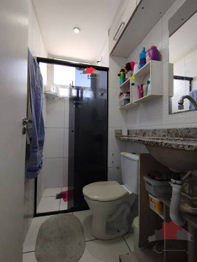 2 quartos, Sala para dois ambientes, cozinha, Área de serviço, banheiro com chuveiro, 1 vaga de garagem.