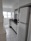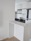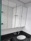 • Banheiro social com box de vidro, armários planejados, espelho e tela de proteção