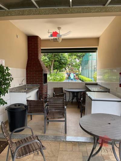 Área de laser completo no condomínio, com vista privilegiada, elevador, piscina adulto e Infantil, salão de festas, academia, vestiário feminino e masculino na área da piscina, portaria 24 horas, quadra poliesportiva, churrasqueira, freezer, bebedouro na área de lazer, playground, garagem.