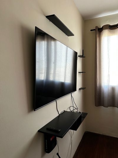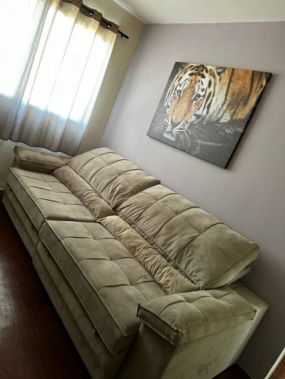 ✅ Sala de estar com sofá retrátil, TV 55” e cortina