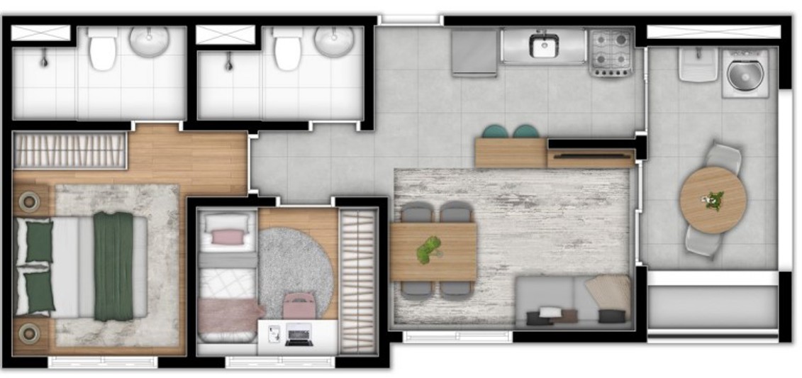38m² com varanda, ( com e sem vaga ) 2 Dorms