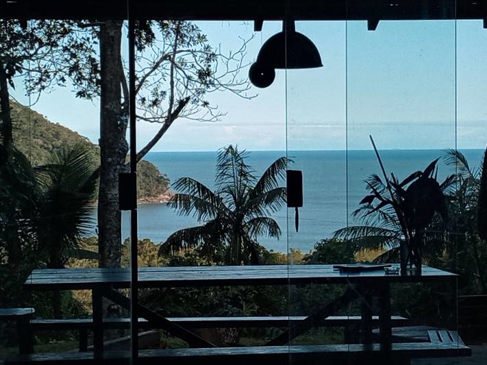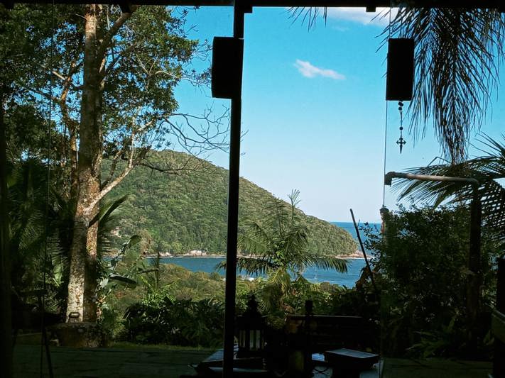 No alto de um condomínio fechado, em plena Mata Atlântica e com a VISTA PARA O MAR da Barra do Sahy. Arejada, com grandes janelas e portas de vidro. Equipada com utensílios básicos e redes na varanda. Longe do tumulto das cidades e apenas 25 minutos de caminhada ou 5 min de carro até a praia. Água de nascente numa super ducha no jardim. Apreciar o nascer do sol no mar sem precisar levantar da cama, é o "must"!