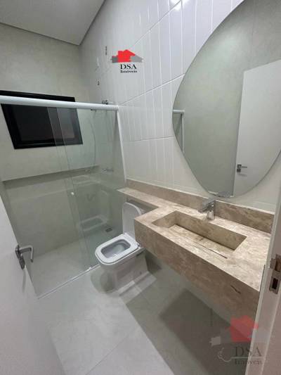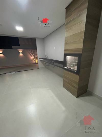 Com 3 dormitórios sendo 1 suíte, banheiro social, lavabo, cozinha com cooktop, sala de jantar, sala de estar, garagem para 4 carros (2 cobertas), área gourmet com cooktop, piscina e jardins.