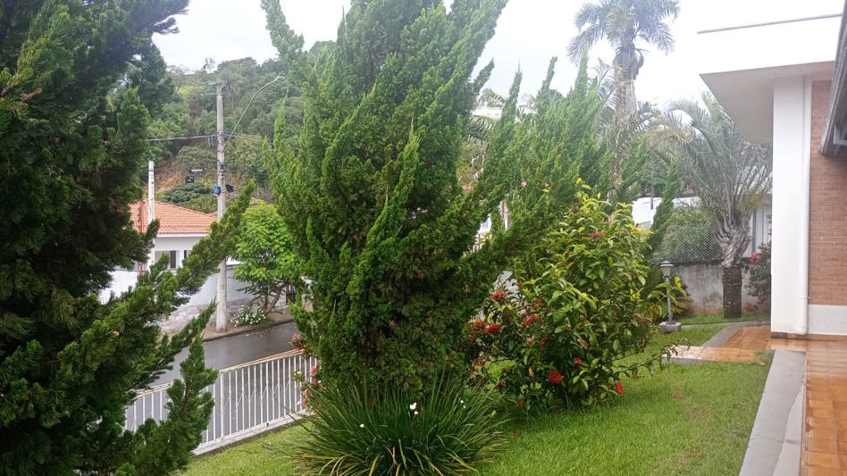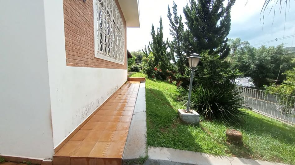 Linda casa a venda no centrode Lindóia SP com três quartos, sendo uma suíte, um banheiro social, um lavado, sala grande de dois ambientes, varanda fechada em blindex com vista para o jardim, cozinha grande, dispensa, quintal gramado, edícula com suíte, churrasqueira com forno e banheiro social, quarto extra, escritório, canil, pequeno pomar, garaegem para três veiculos