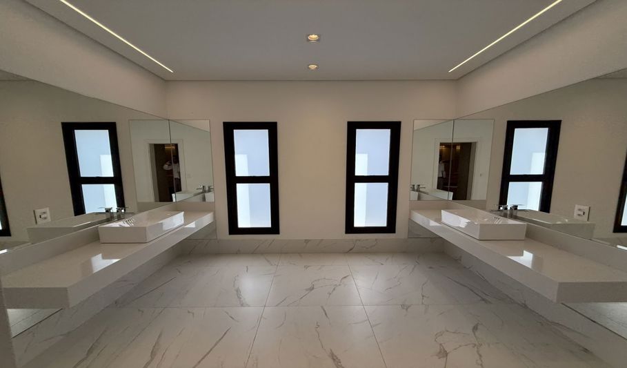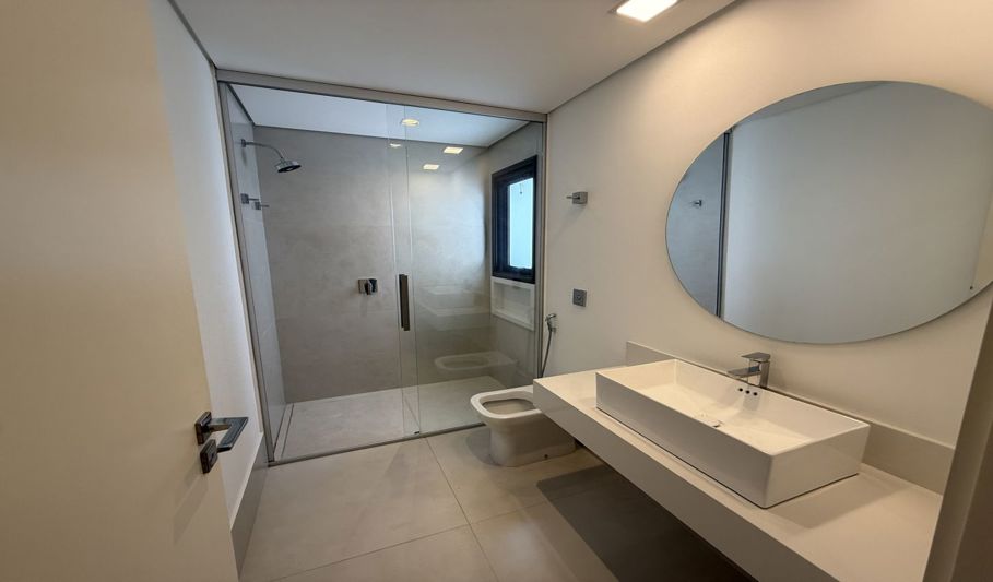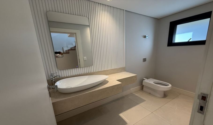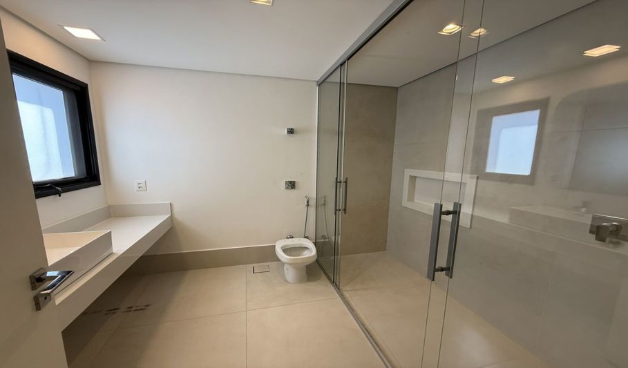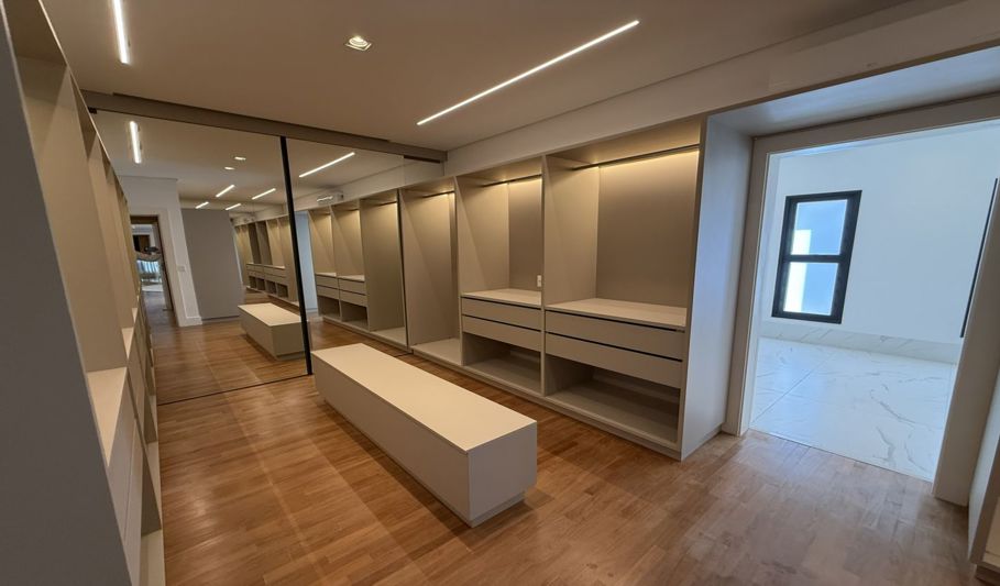 No piso superior, são 3 suítes com closet e ar condicionado, 1 dormitório e uma suíte máster com dois closets e duas áreas de banho.