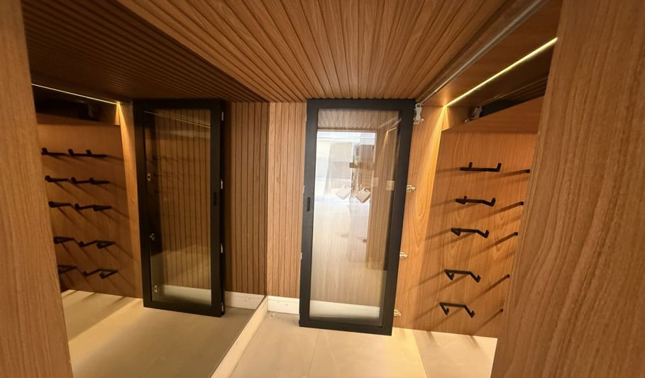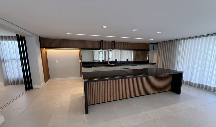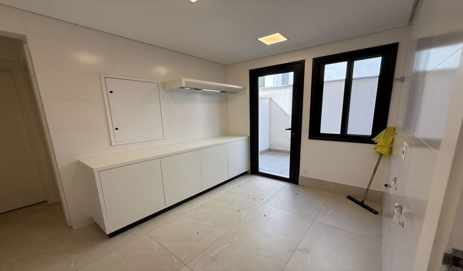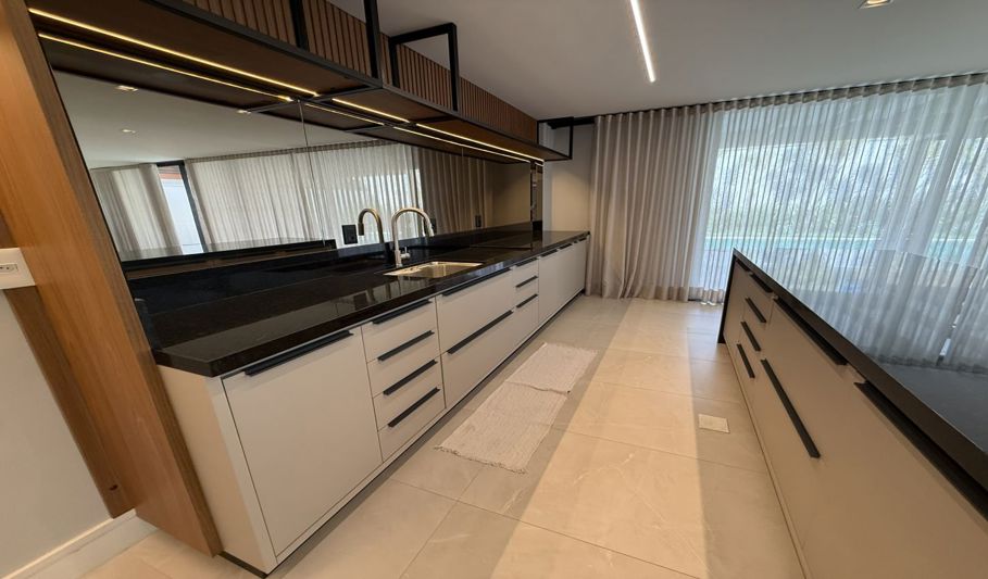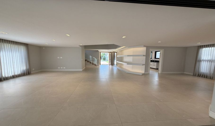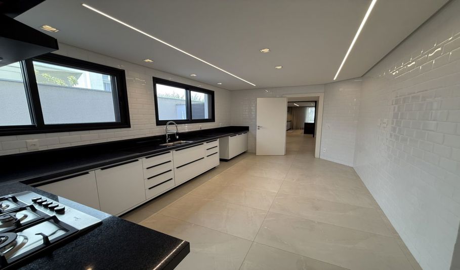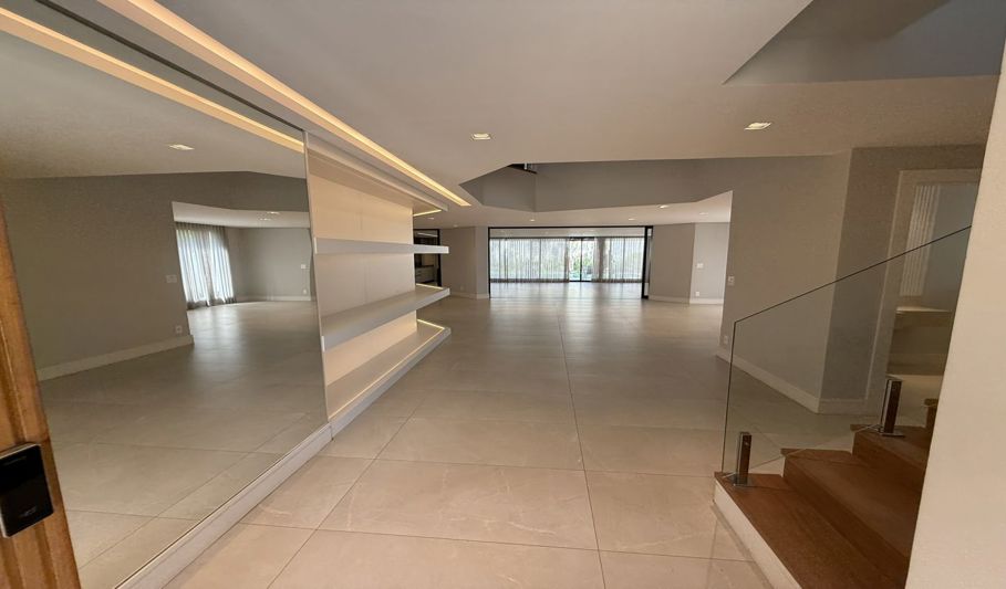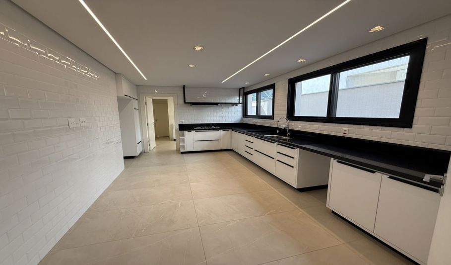 O imóvel possui 550 m² de área construída, garagem coberta para dois carros, além de vagas adicionais descobertas. Conta com salas de estar e jantar, cozinha com armários, lavanderia, adega, espaço gourmet e suíte para funcionária.