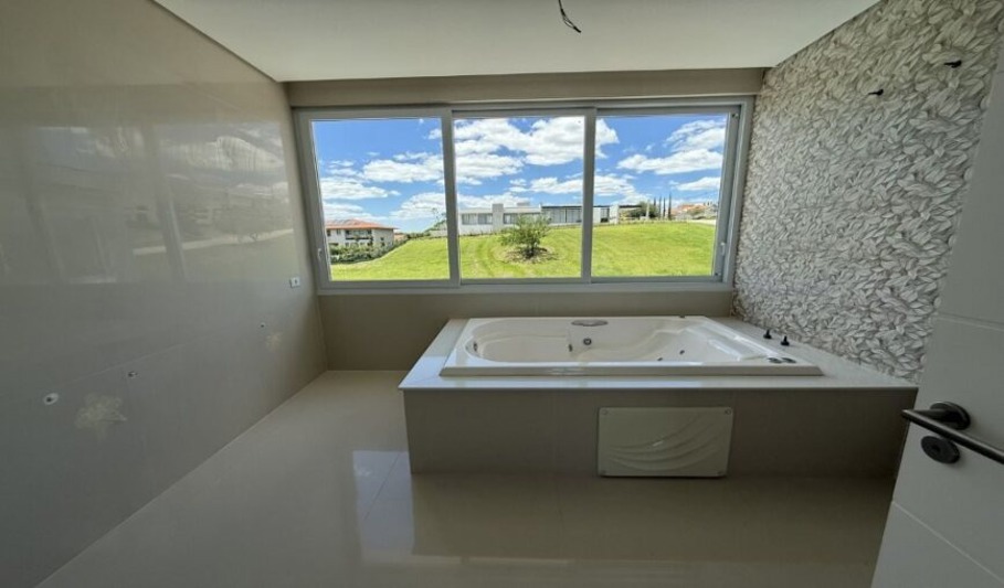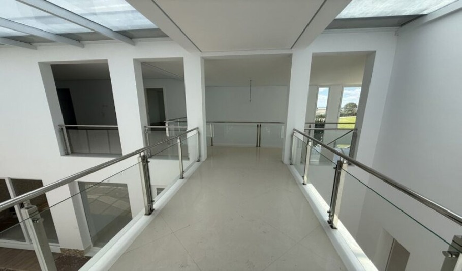 O imóvel possui 4 suítes, sendo uma master com closet, banheiro com banheira dupla e varanda com vista do pôr do sol. As áreas sociais são integradas, incluindo sala de estar, jantar e lareira. Conta também com escritório privativo e lavabo para visitantes.