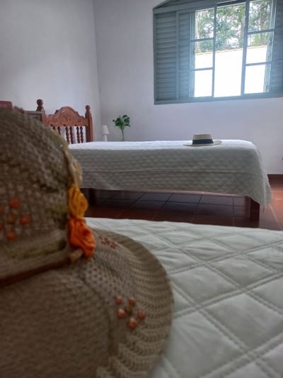 A chácara ainda possuí um quarto extra na parte de fora da casa