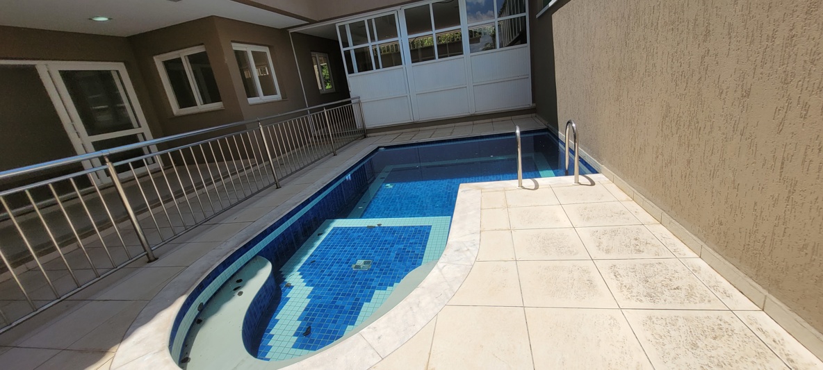 Piscina c/hidromassagem, com grade de proteção em alumínio.